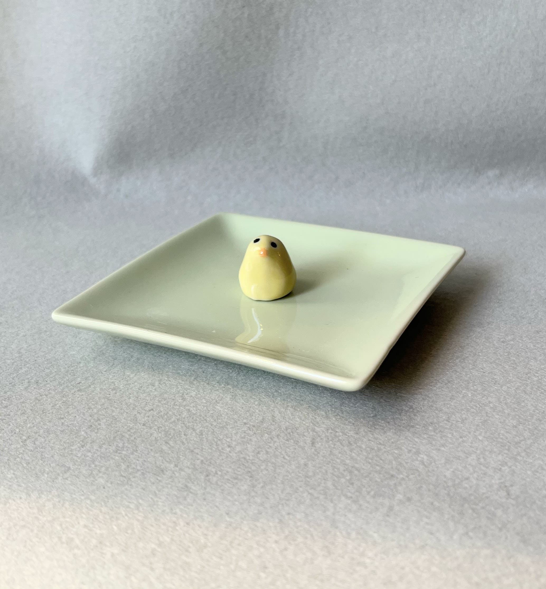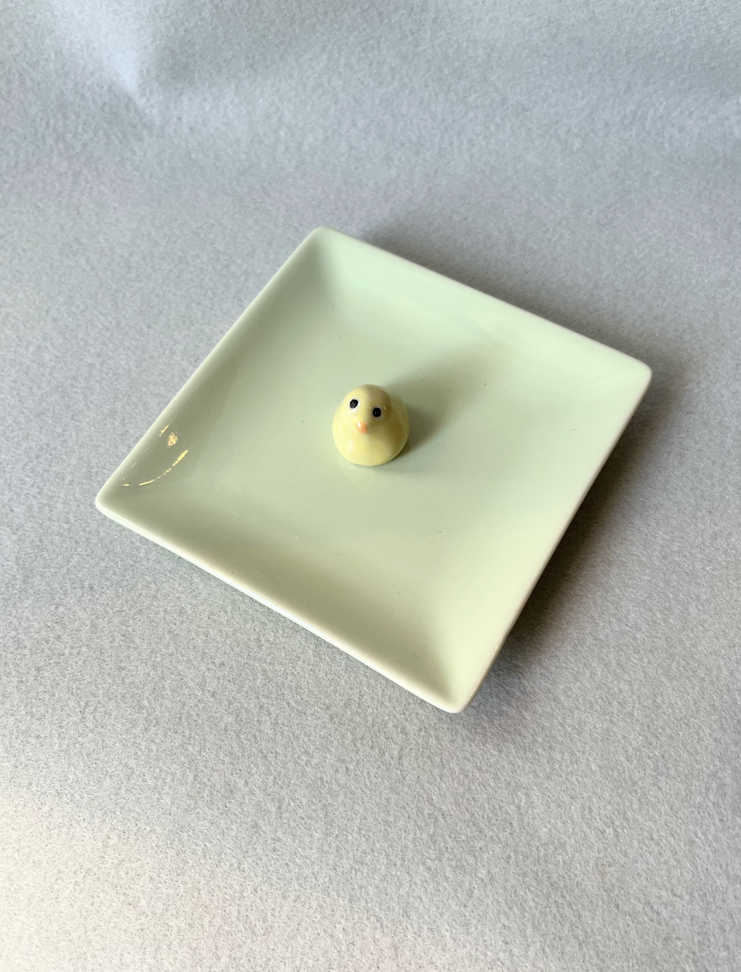 HOME | 香立て・香炉 | 陶器香皿&ヒヨコ香立てミントグリーン 陶器香皿&ヒヨコ香立て ミントグリーン ヒヨコの香立てとミントグリーンの香皿のセットです。すまして香皿にちょこんと座っている・・・可愛いヒヨコです。 ※お好きなお香をヒヨコの香立ての穴にさしてお使いください。※お香は含まれておりません。※紙箱入り。 箱を含む重量は約132g。 ですので、プレゼントとしても大変喜ばれています。 素 材 磁器 サイズ 幅:約94mm × 高さ:約30mm×奥行:約94mm 価 格 968円(税込) 香立て・香炉一覧に戻る