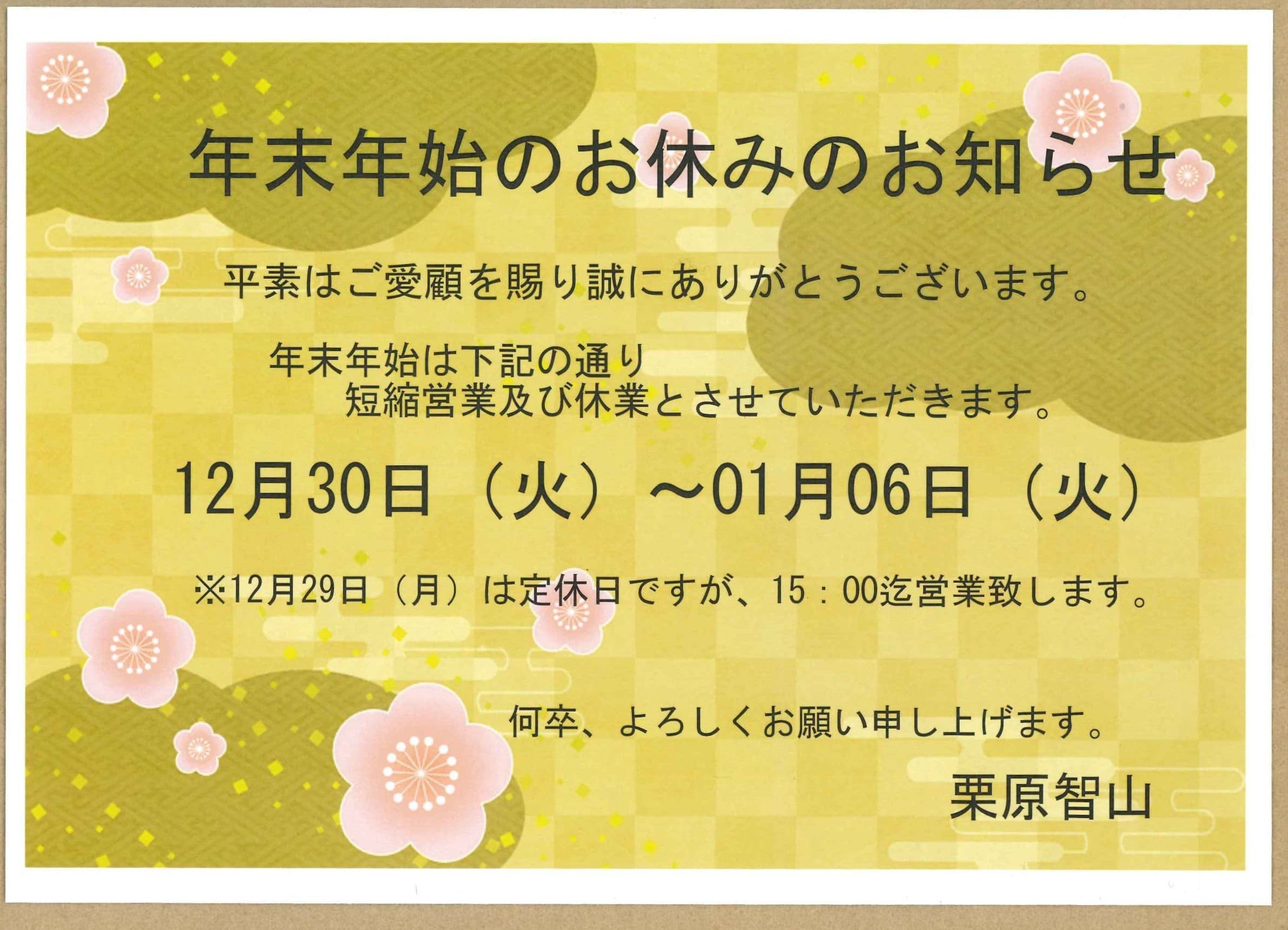 年末年始のお休みのお知らせ