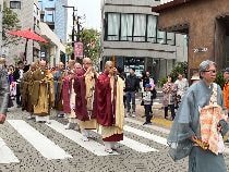 麻布十番の大通りを『お稚児さんのパレード』が練り歩き、その後パティオで『花祭りの法要』が行われました。