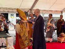 3年ぶりに麻布十番の大通りを『お稚児さんのパレード』が練り歩き、その後パティオで『花祭りの法要』が行われました。